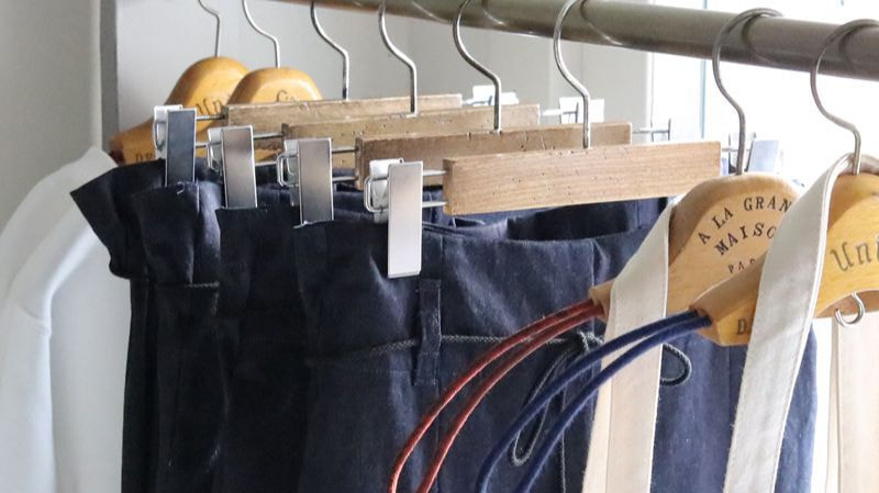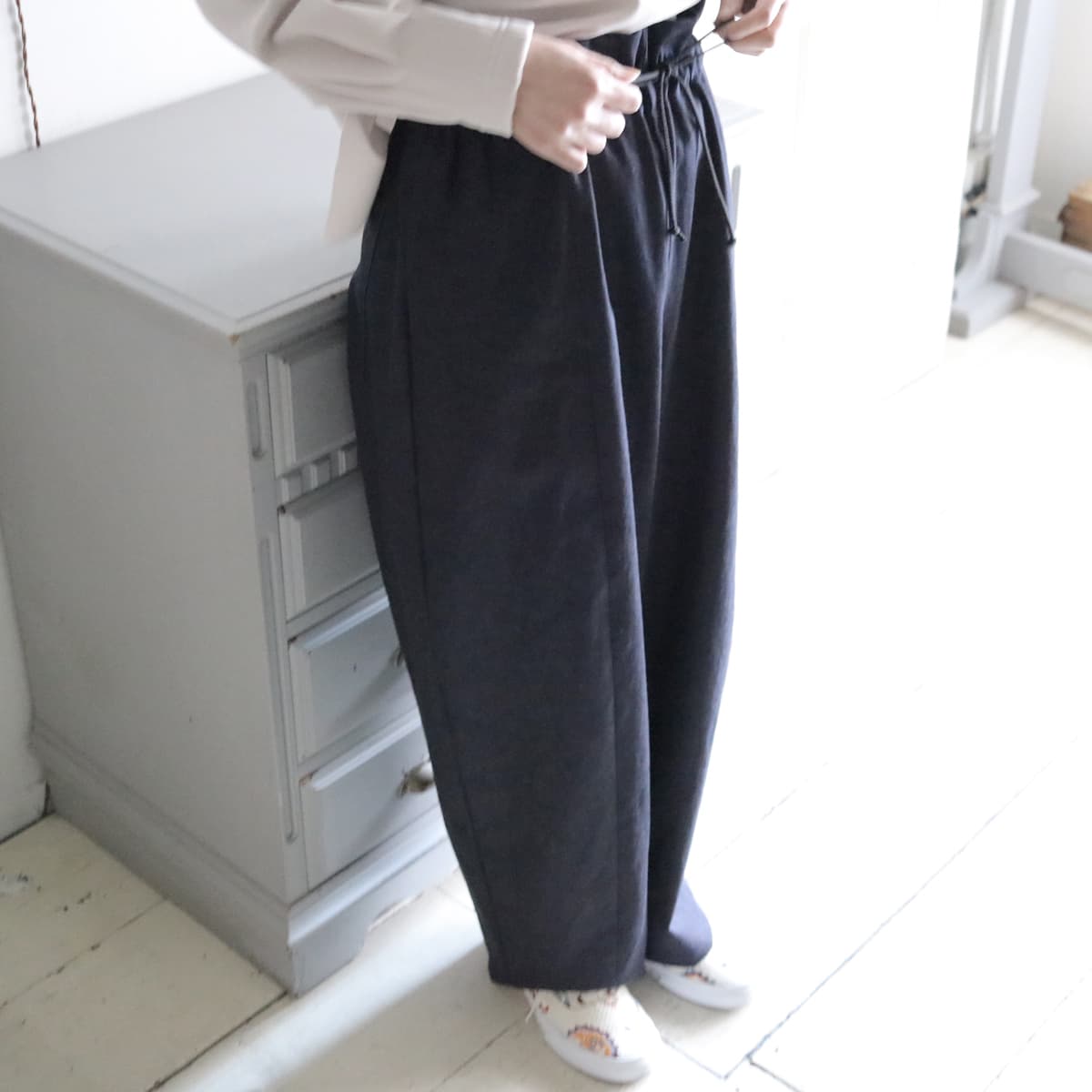 シリーズ違いがあります(デニム1色、チノ2色、リネン1色).太めの形が苦手な方でも格好よくすっきり見えるように前側を立体にしています.三日月のような丸みのある立体的な形から名前をつけた個性的なパンツです...