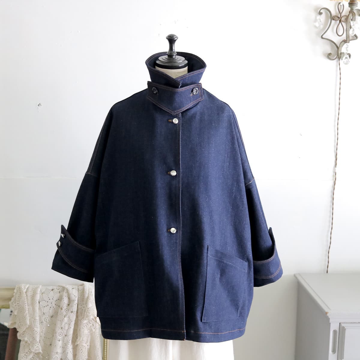 古着ビンテージ、ワーク、ミリタリーを参考にし、フレンチワークのAラインのクラシカルな形を大人っぽく着やすいデザインに落とし込みました.柔らかくしっかりとした厚みのある岡山県産のデニムを使用しています...